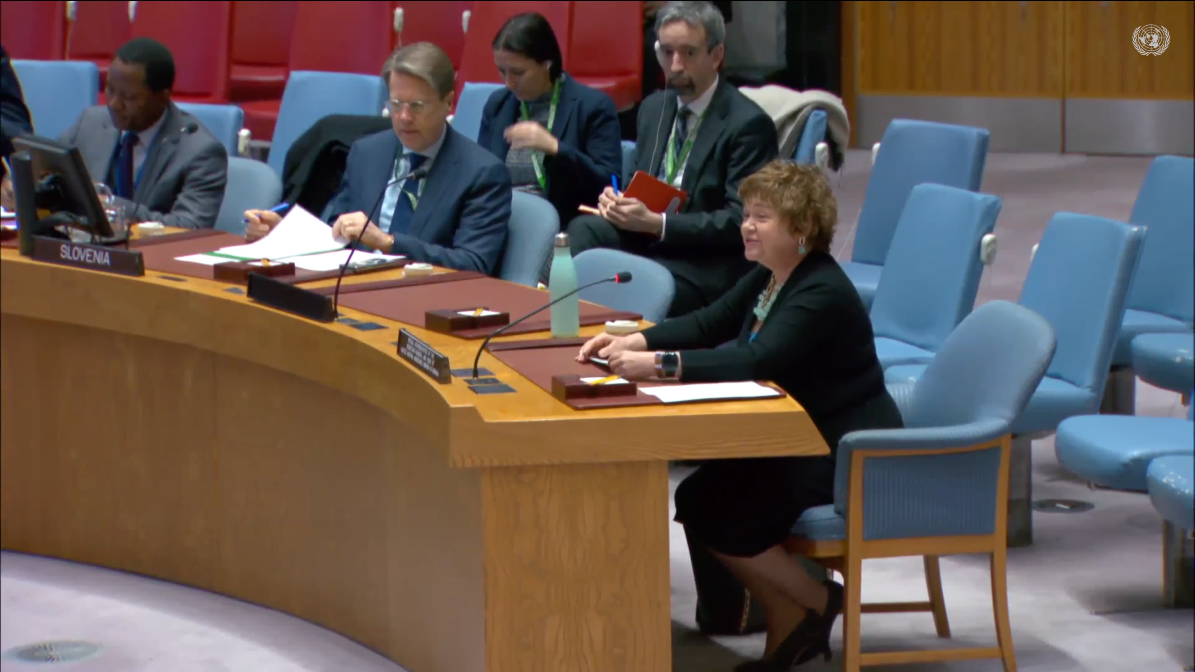 Horumarka laga sameeyay dhanka amniga, waxey Catriona Laing muujisay sida ay ugu qanasantahay in ay Qaramada Midoobay uga warbixiso horumarada la taaban karo ee laga sameayay xasilinta deegaannada dhawaan lagala wareegay Al-Shabaab iyo hirgelinta sharciga, maamulka, dib-u-heshiisiinta, iyo bixinta adeegyada aasaasiga ah ee la geynayo goobaha la xoreeyay.