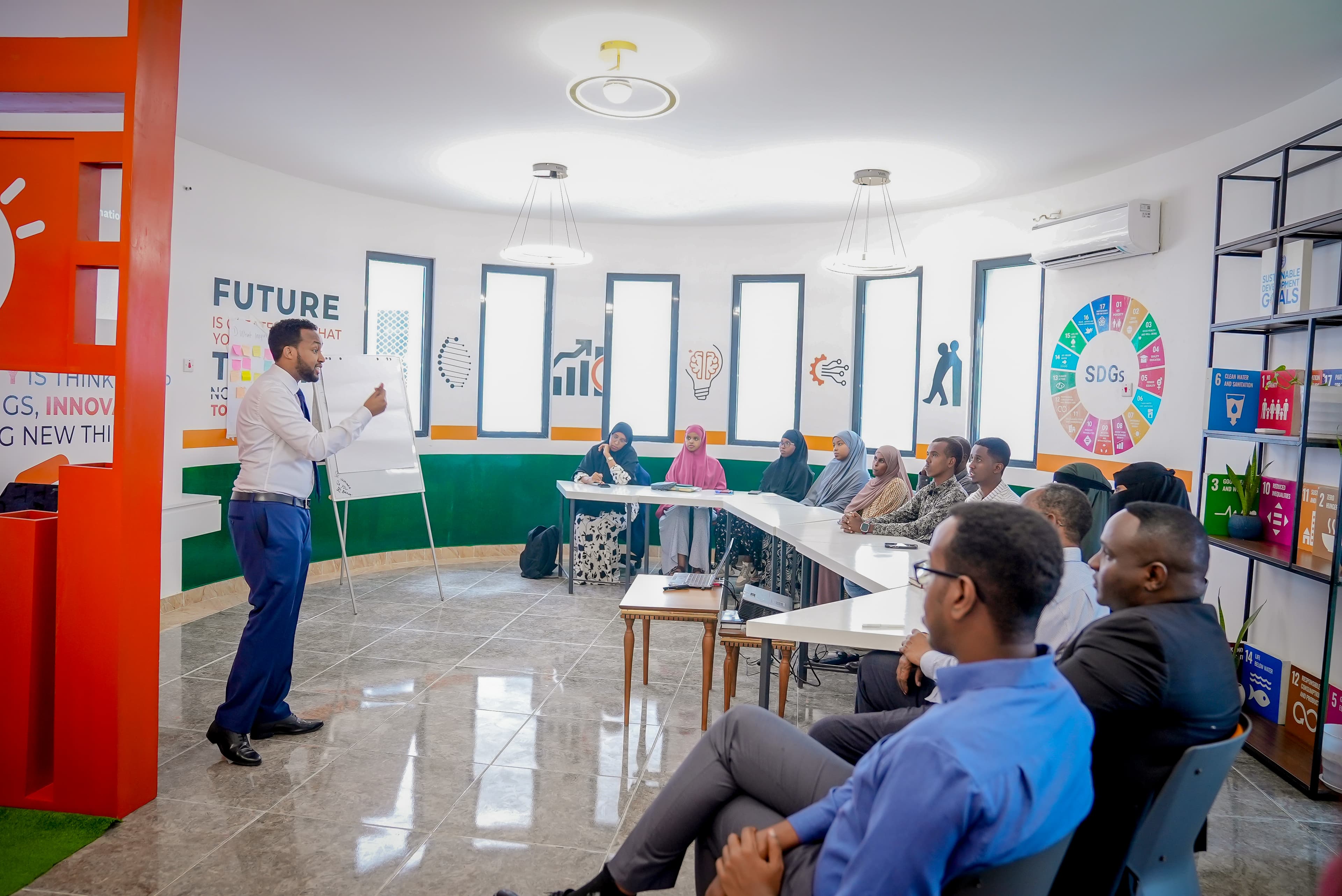 Khubarada ganacsiga iyo ardayda ka faa'iideysaneysa barnaamijka ayaa isdhaafsanaya doodo iyo fikrado badan si looga soo saaro shaqo natiijo leh.
