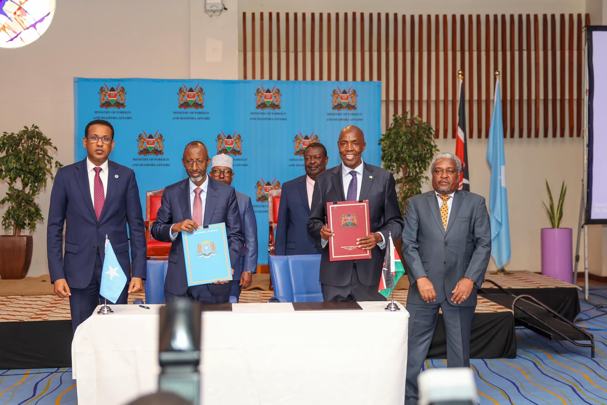 Muqdisho (Dawan)- Dowladaha Soomaaliya iyo Kenya ayaa galabta ku kala saxiixday magaalada Nairobi ee caasimadda dalka Kenya heshiisyo is-afgarad oo ku saabsan dhinacyada, Arrimaha dibadda, Nabadgalyada, Dhaqaalaha, Ganacsiga, Waxbarashada iyo arrimaha adeegga Bulshada.