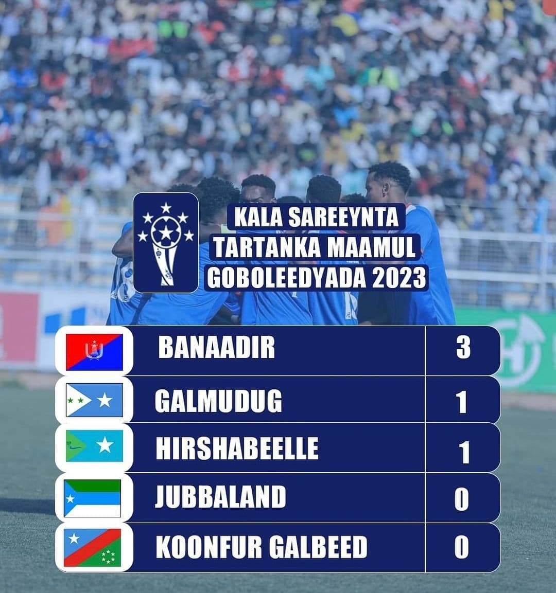 Guushaan ayaa ka dhigan in Gobolka Banaadir uu 3 dhibcood ku hoggaaminayo tartanka ilaa iyo hadda in kasta oo Jubbalanad aysan weli ciyaarin.
