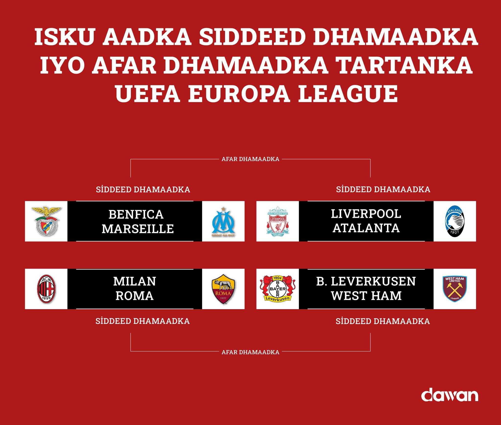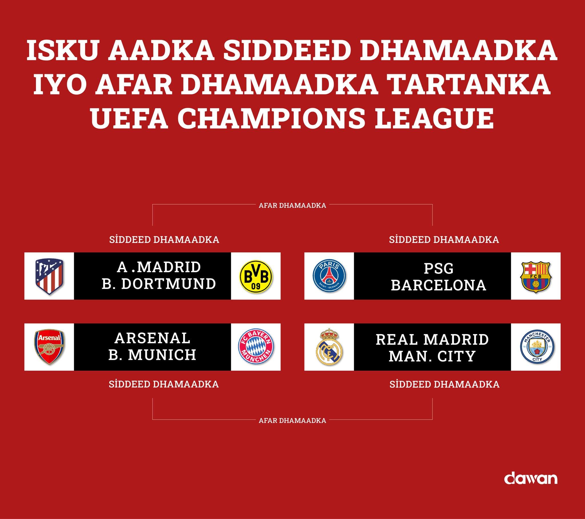 Muqdisho (Dawan)- Isku aadka siddeed dhamaadka iyo afar dhamaadka Uefa Champions League iyo Eufa Europe League