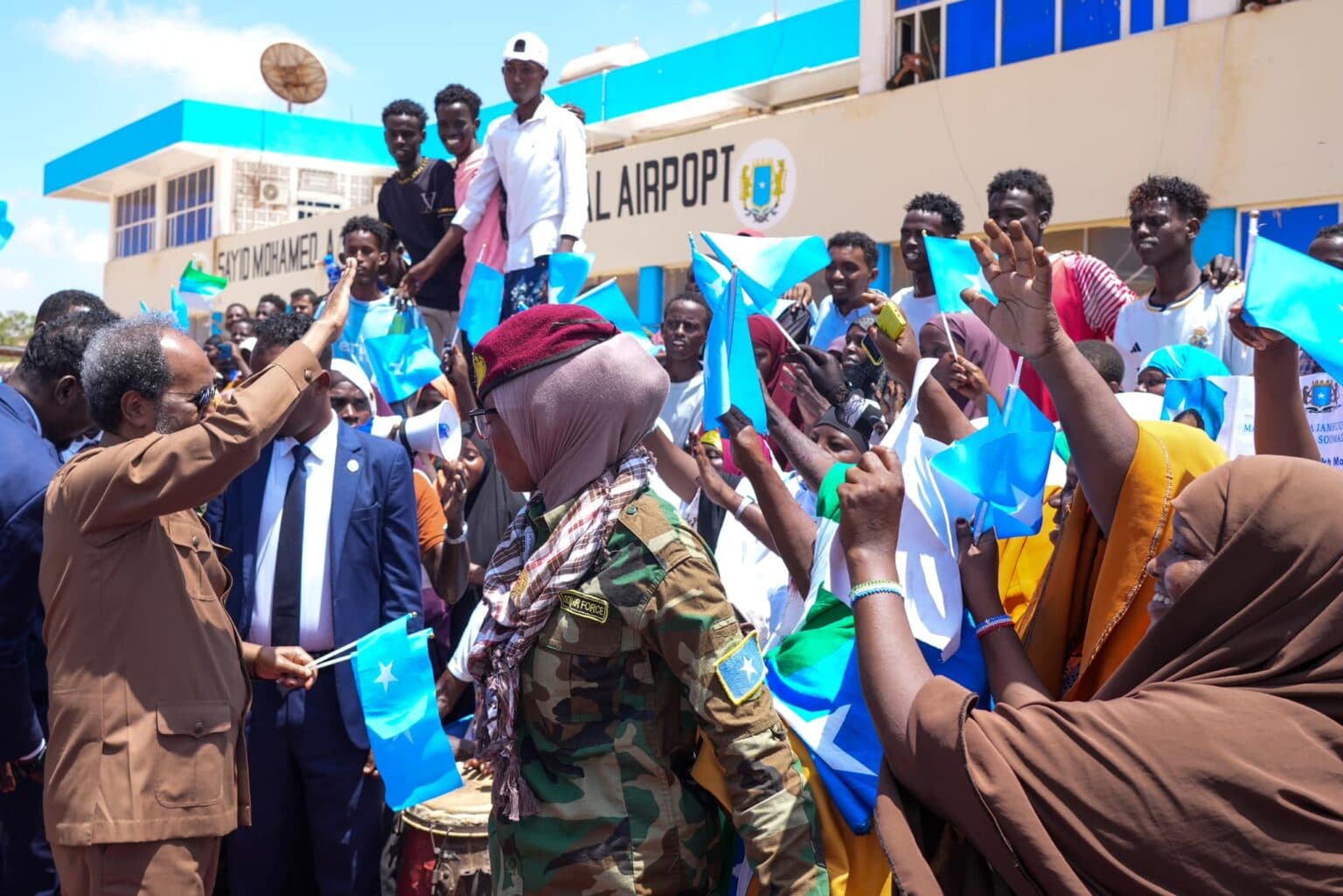 Madaxweynaha waxaa garoonka Magaalada kusoo dhaweeyay Madaxweynaha Dowlad Goboleedka Jubaland mudane Axmed Maxamed Islaam, Madaxweyne ku xigeenada, xubnaha Xukuumadda Jubbaland iyo boqolaal ka mid ah bulshada deegaanka.