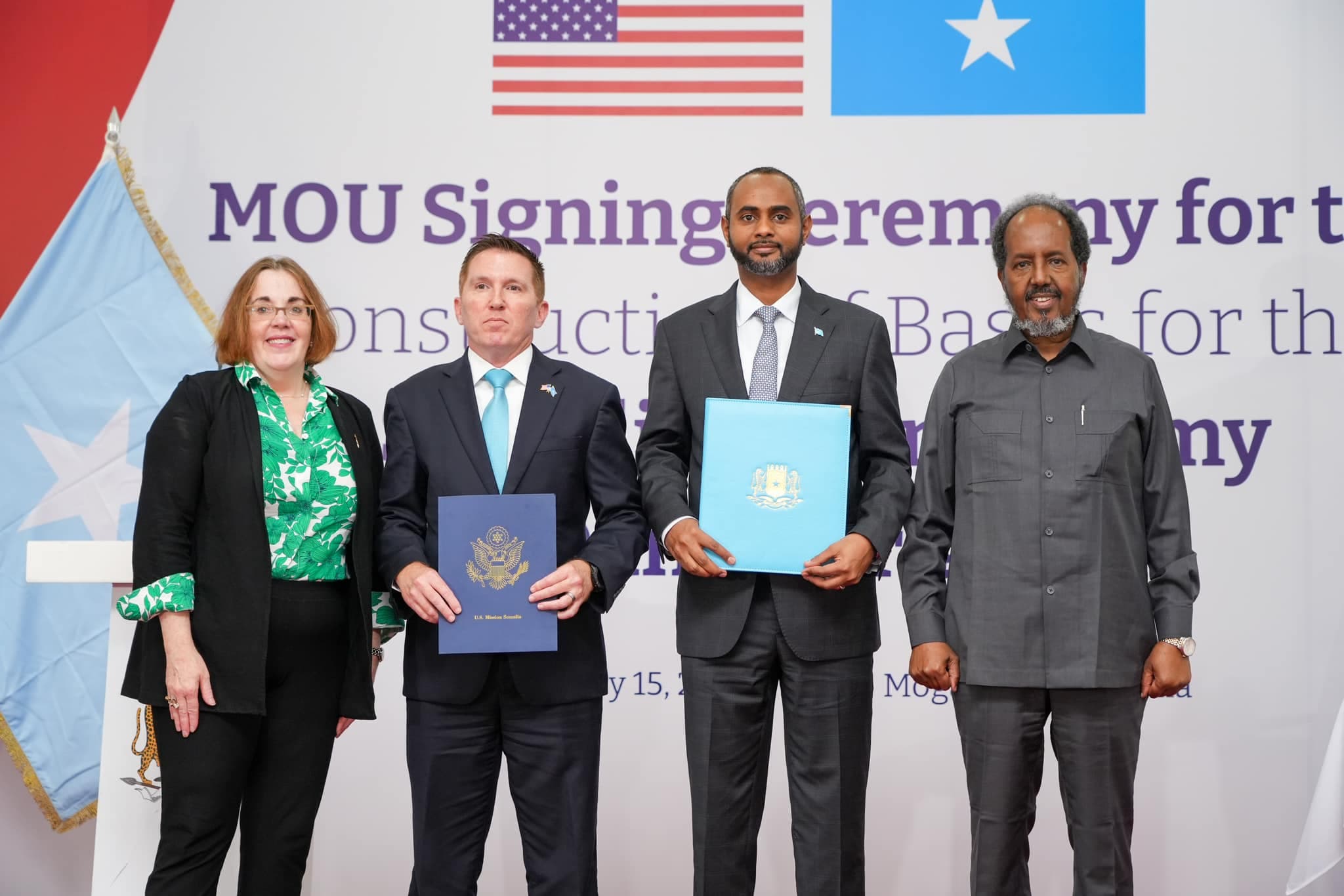 Heshiis arrintaan ku saabsan ayay Dowladda Mareykanka iyo Soomaaliya ku kala saxiixdeen 15-ka bishaan February 2024 Magaalada Muqdisho, iyada oo ay goob joog ahaayeen Madaxweynaha Soomaaliya, Xasan Sheekh Maxamuud iyo Kaaliyaha Xoghayaha Arrimaha Dibadda Mareykanka ee Arrimaha Afrika, Molly Phee.