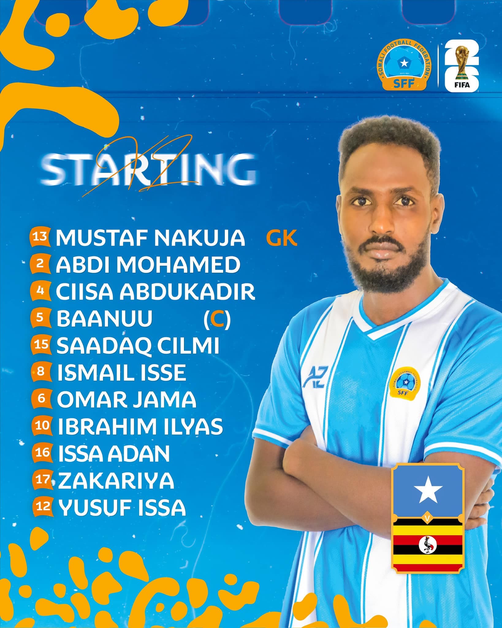 Morocco (Dawan)- Xulka Qaranka Soomaaliya ayaa galabta ka hortegi doona dhiggooda Uganada kulanka labaad ee isreeb-reebka Koobka Adduunka 2026.