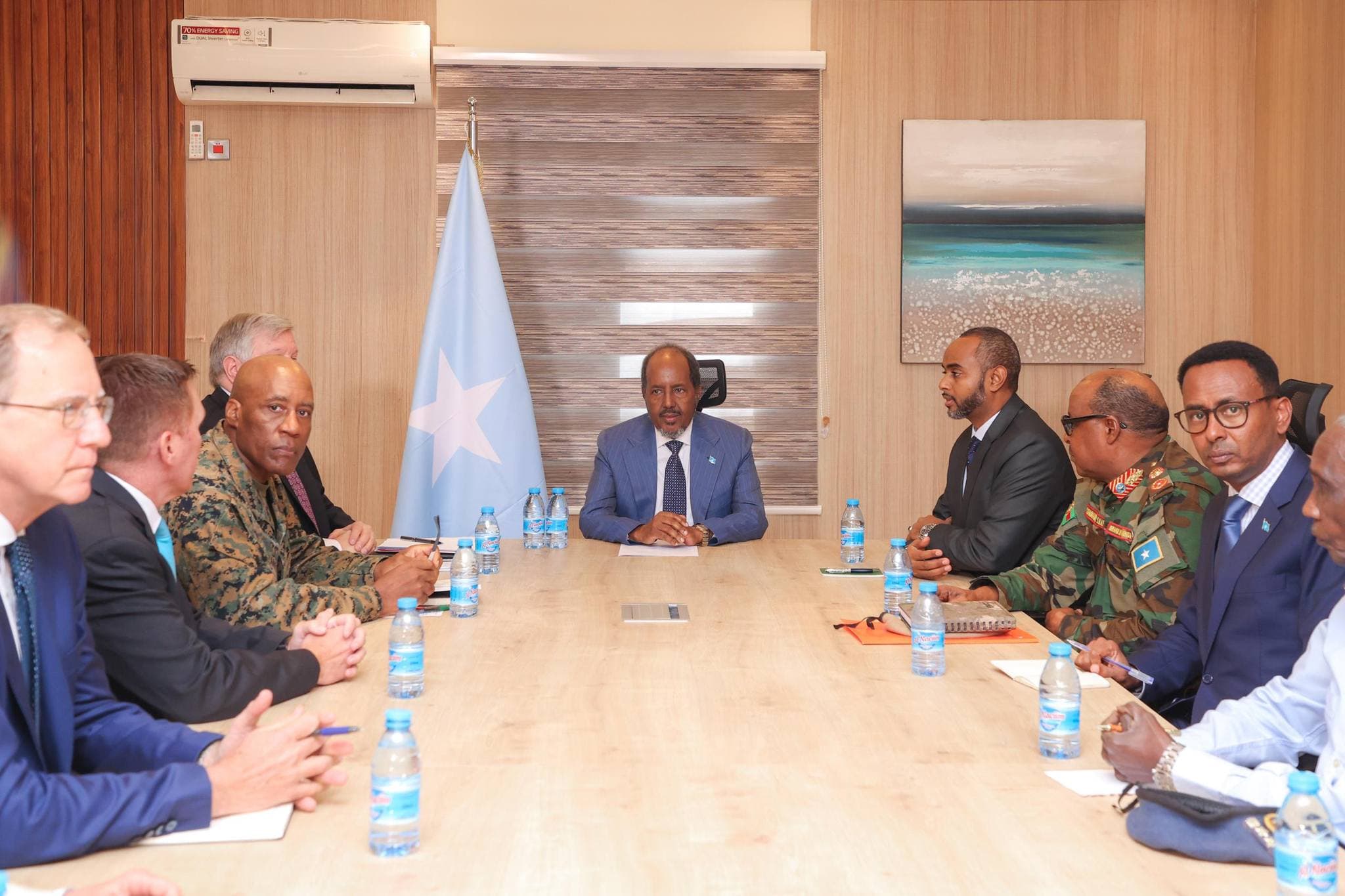 Munaasabadda waxaa goob jooga ahaa Taliyaha Ciidamada Mareykanka ee Afrika (AFRICOM), General Michael E. Langley, Wasiirka Difaaca Soomaaliya, Cabduqaadir Maxamed Nuur, Wasiirka Arrimaha dibadda Axmed Mcallin Fiqi iyo mas'uuliyiin kale oo labada dhinac ah.