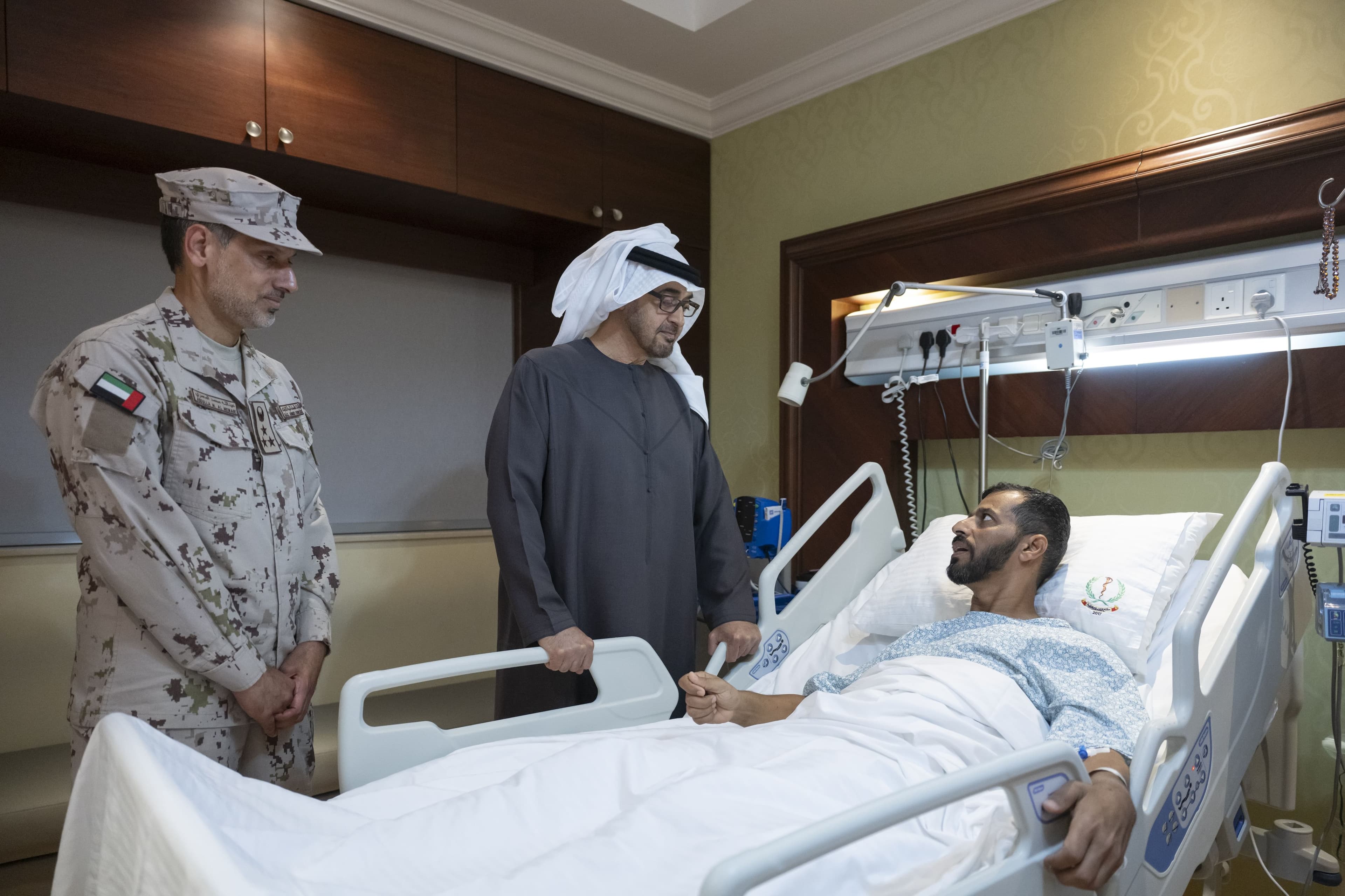 Abu Dhabi (Dawan)- Madaxweynaha Imaaraatka Carabta Shiikh Maxamed bin Zayed Al Nahyan ayaa maanta ku booqday Cisbitaalka lagu daweynayo Kabtan Maxamed Saliim Al Nucaymi oo ka mid ah saraakiishii Imaaraadka ee ku dhaawacantay weerarkii xerada ciidanka Jeneraal Gordon ee Magaalada Muqdisho.