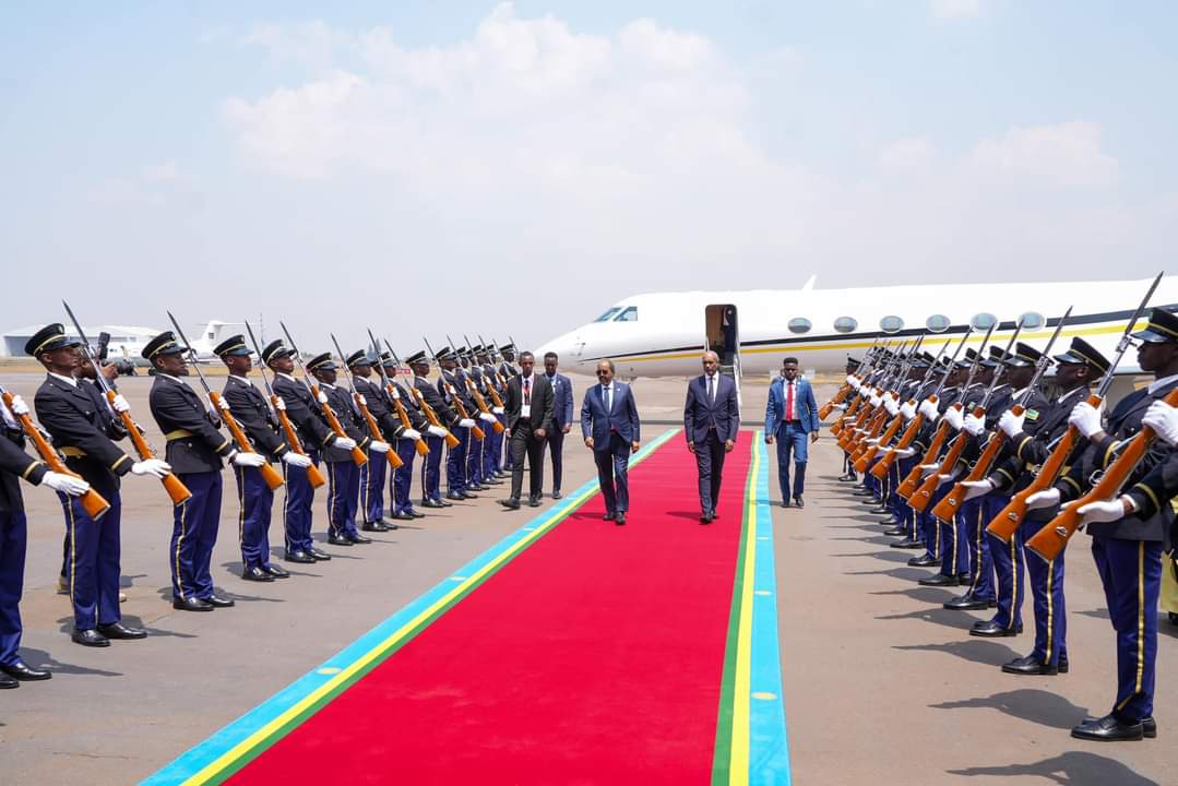 Madaxweyne Xasan waxaa ku soo dhaweeyey Garoonka caalamiga ah ee Kigali wasiirka cadaladda Rwanda iyo safiirka Soomaliya u fadhiya dalkaas Sahra Cali Xasan.