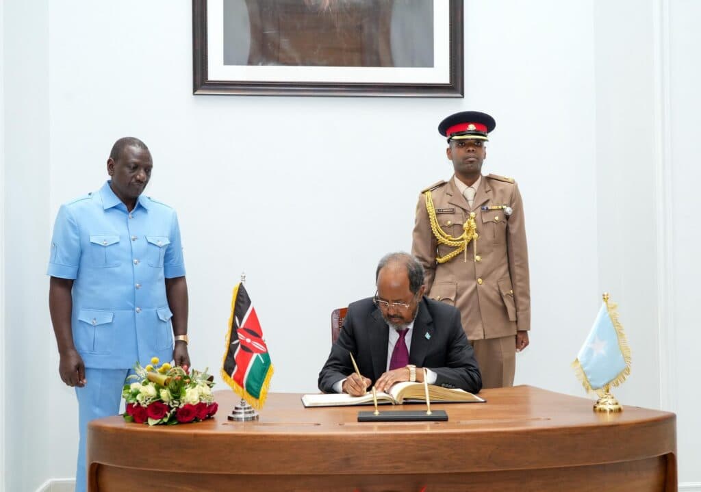 Nairobi (Dawan)- Madaxweynaha Soomaaliya, Xasan Sheekh Maxamuud ayaa maanta Kulan kula qaatay Qasriga Madaxtooyada Kenya dhiggiisa dalkaas Mudane William Ruto.