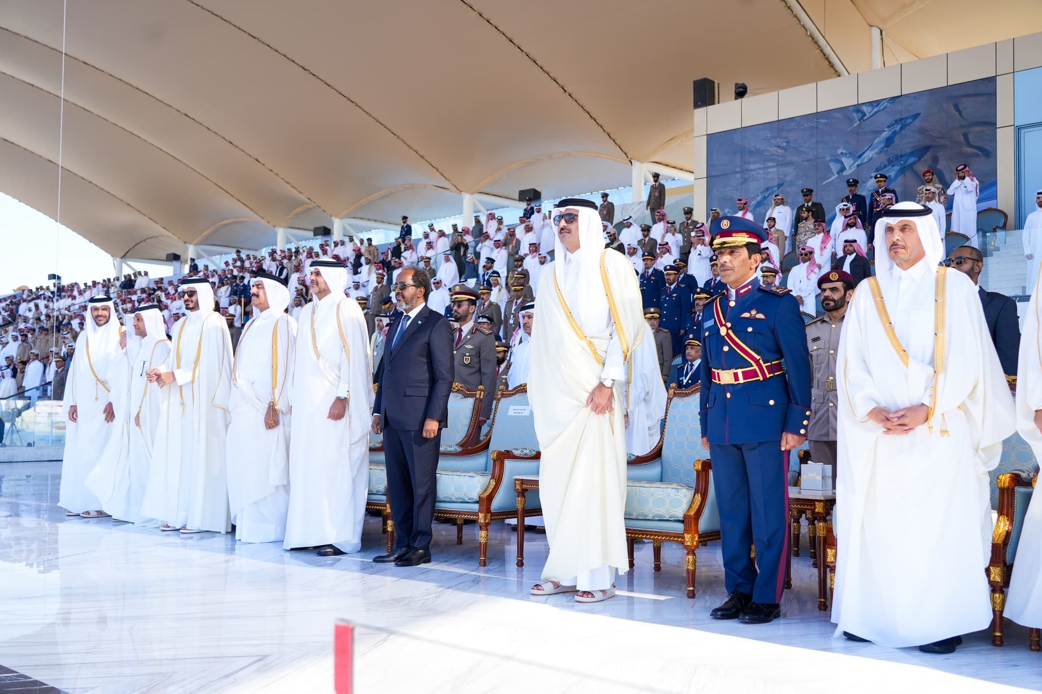 Dooxa (Dawan)- Madaxweynaha Soomaaliya, Xasan Sheekh iyo Amiirka Dalka Qatar, Tamiim bin Xamad ayaa ka qeyb-galay munaasabad ay ku qalanjabinayeen saraakiil ka tirsan ciidamada cirka ee dalalka Soomaaliya, Qatar iyo Urdun, kuwaas oo tababarka dhanka Taakuleynta Ciidanka Cirka uu kaalinta koowaad u galay Saciid Cali Cabdullaahi oo ka mid ah Halyeeyada Ciidamada Qalabka Sida ee Soomaaliya, sida ay sheegtay Viila Somaliya.