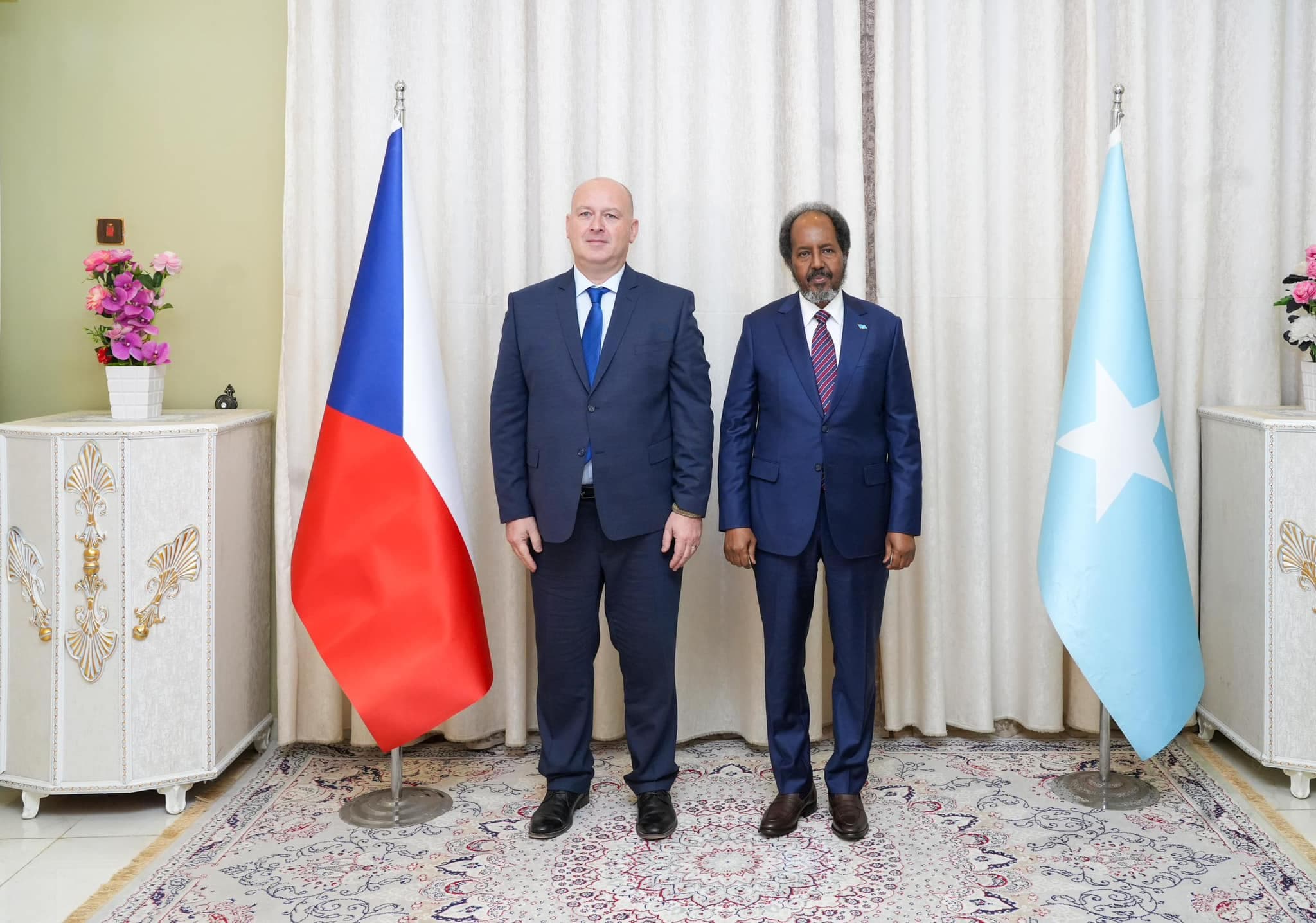 Muqdisho (Dawan)- Madaxweynaha Soomaaliya, Xasan Sheekh Maxamuud ayaa warqadaha aqoonsiga danjirenimo ka guddoomay safiirrada cusub ee dalalka, Hindiya, Japan, Czech iyo Ururka Jaamacadda Carabta ee loo soo magacaabay Soomaaliya, kuwaas oo kala ah; Marwo Namgya Choden, Mudane Okaniwa Ken, Miroslav Kosek iyo Cabdullaahi Mutlaq.