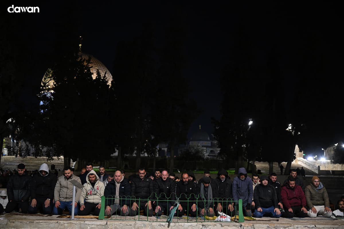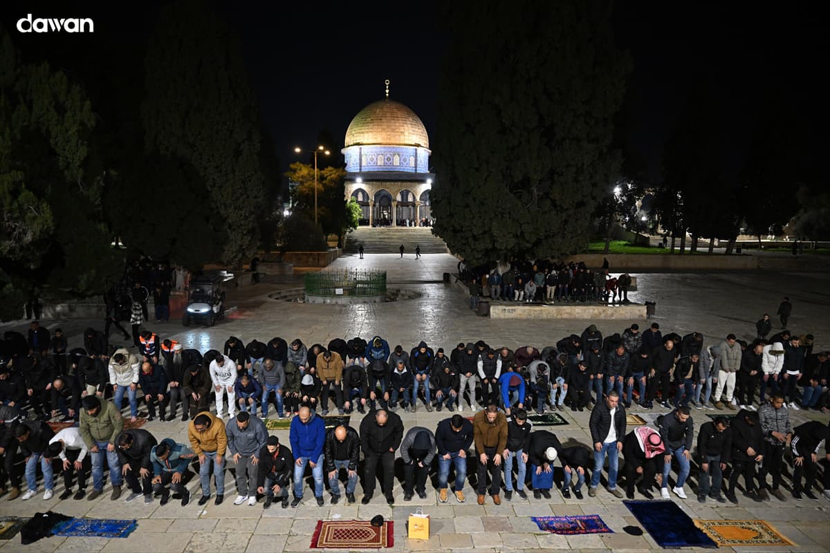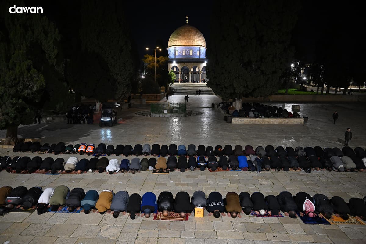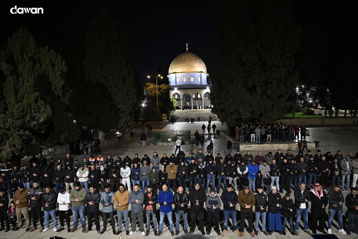 Al-Qudus (Dawan)- Xayiraadihii Israel ay ku soo rogtay Masjidka Al-Aqsa oo sii scoda, xilli Muslimiin badan ay habeenkii koowaaad salaadda Taraawiixda ee bisha Ramadaan ay ku ogeen afaafka hore ee masjidka
