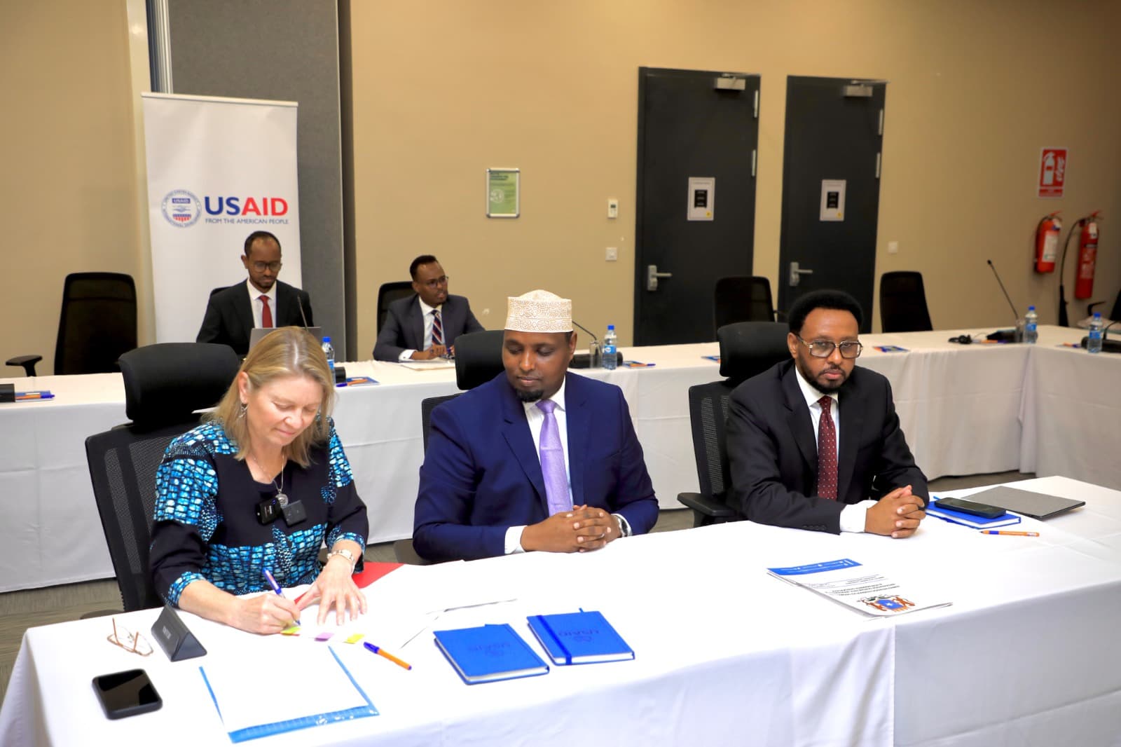 Wasiirka Maaliyadda H.E. Biixi Iman Egeh, iyo Madaxa USAID ee Soomaaliya Catie Lott.