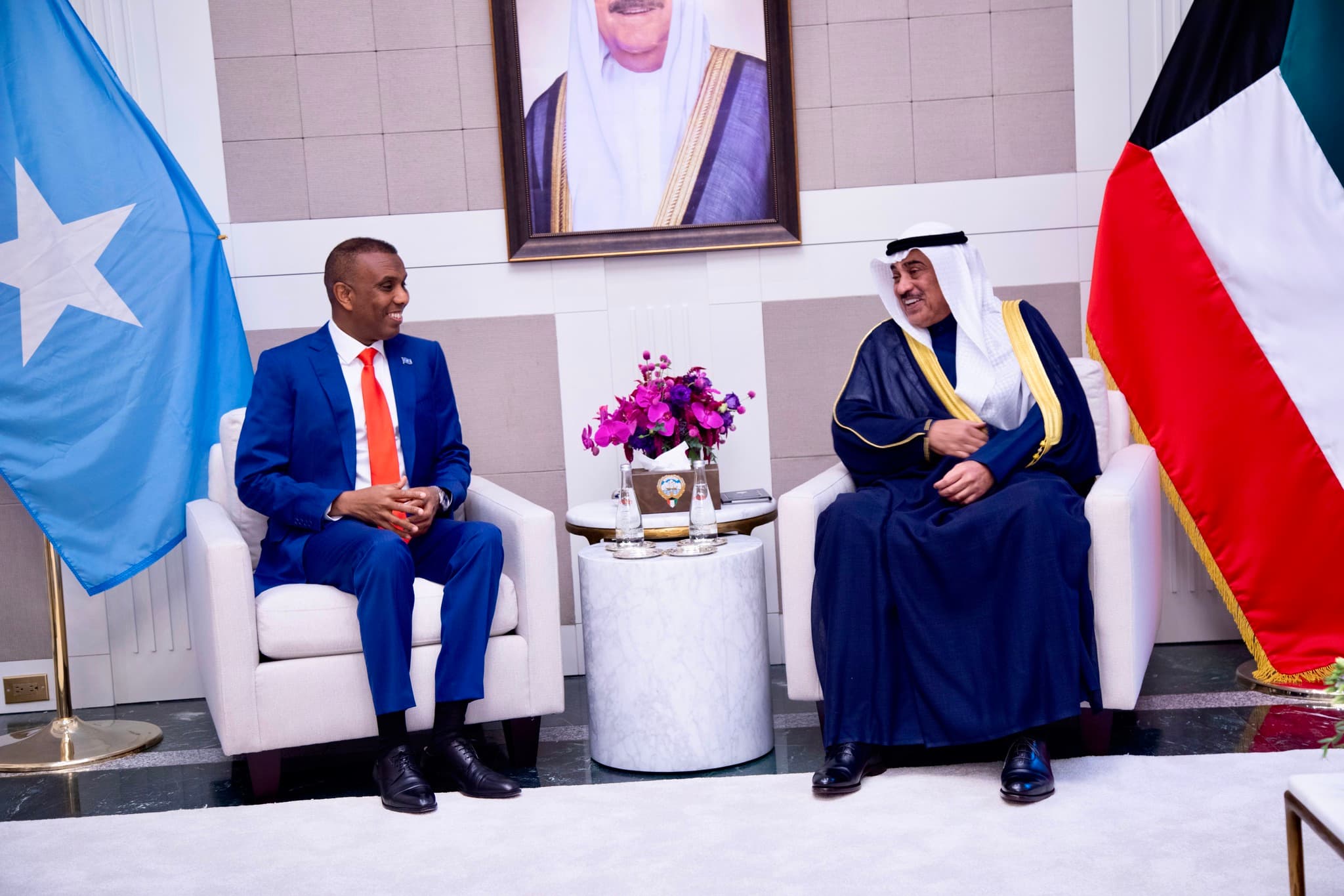 Mas'uuliyiinta uu Xamsa la kulmay, waxaa ka mid ah Dhaxalsugaha dalka Kuwait, Sheekh Sabaax Khaalid Al-Hamad Al-Mubarak, isaga oo kala hadlay xoojinta cilaaqaadka iyo iskaashiga u dhaxeeya labada waddan. Dhaxalsugaha ayaa ku bogaadiyaya dowladda Soomaaliyeed horumarka ay ka sameysay dhinacyada amniga, siyaasadda iyo dhaqaalaha.