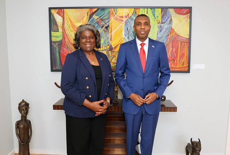 Ra’iisul Wasaare Xamsa waxa uu sidoo kale kulan doceed la qaatay Danjiraha Mareykanka ee Qaramada Midoobay, Ambassador Linda Thomas-Greenfield, oo ay ka wada hadleen xoojinta xiriirka iyo iskaashiga ka dhaxeeya labada dal Soomaaliya iyo Mareykanka.