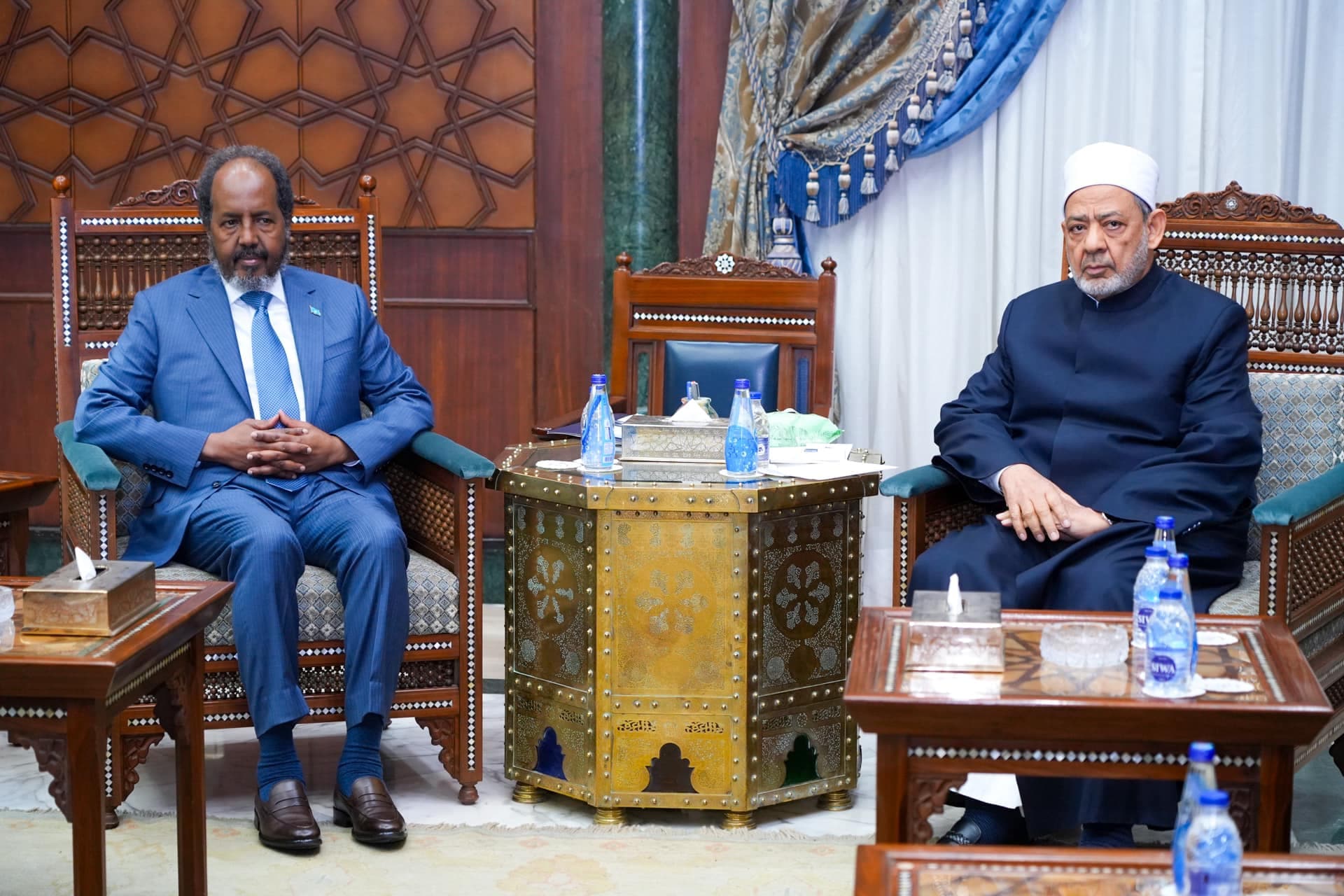 Sidoo kale, Madaxweyne Xasan ayaa booqday xarunta Al-Azhar, waxaana soo dhaweeyay Imaamka Al-Azhar Al-Shariif Dr Axmed Al-Dayib, isagoo u fidiyay casuumad si uu soo booqd Soomaaliya.