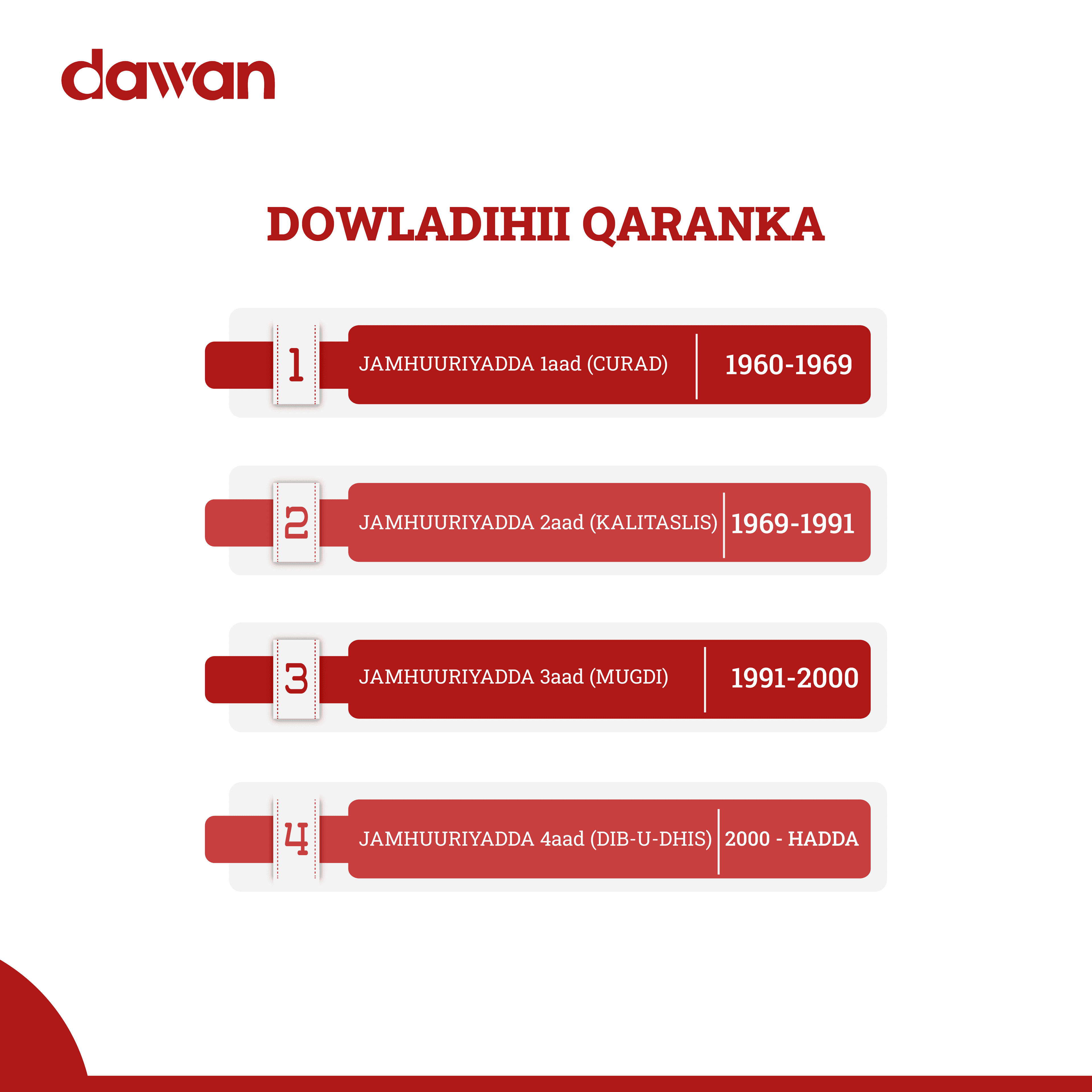Muddo xasillooni la’aan ah iyo dhismaha dowlado kumeel gaar ah oo qaatay 20 sano oo jahwareer ah, waxaanu u aqoonsanay jamahuuriyadda Saddexaad “Jamhuuriyad madow”.